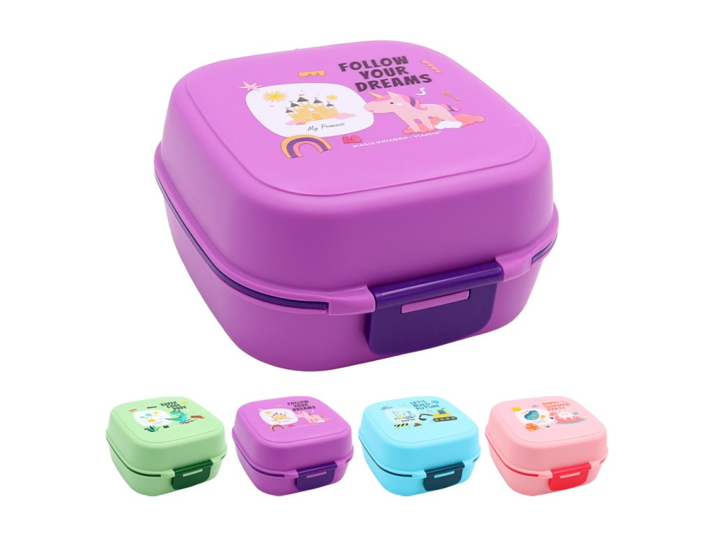 Svačinový box pro děti + lžička (mix 4 barev)