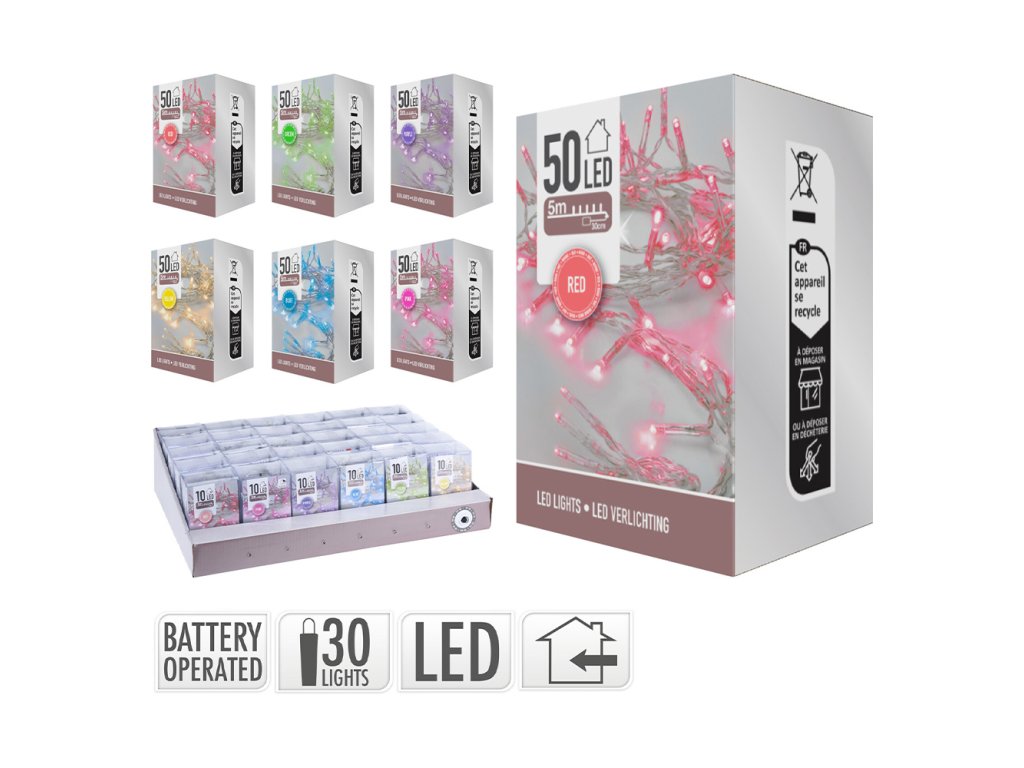 Svítící řetěz obsahuje 50 LED o průměru 3 mm.