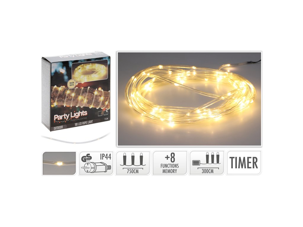 Světelný řetěz v hadičce 100 LED bílá teplá, délka 7,5 m