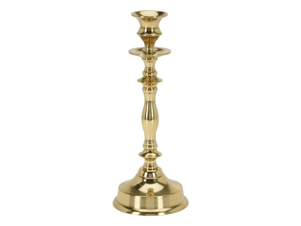 Aluminiový svícen ve zlaté barvě na svíčku do průměru 20 mm.