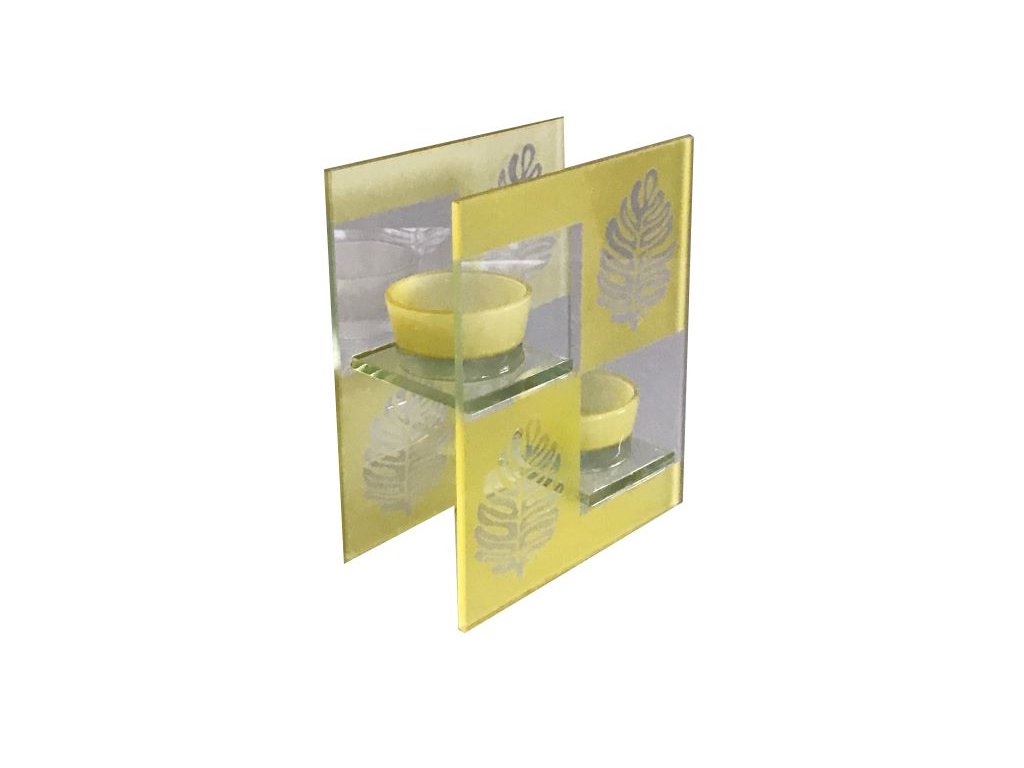 Svícen na 2 čajové svíčky žlutý s listy