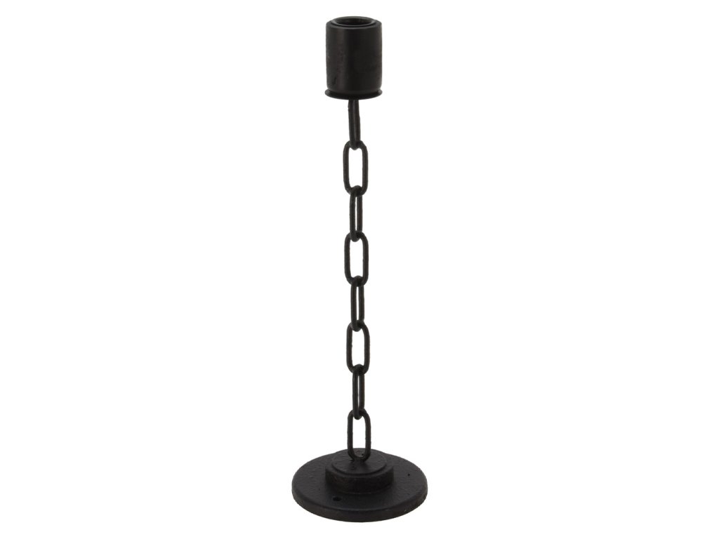 Retro svícen s řetězem v černé barvě na svíčku do průměru 20 mm.