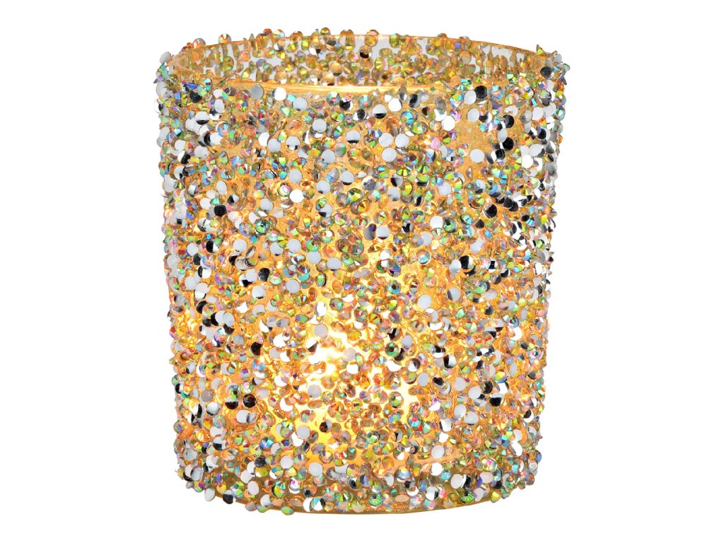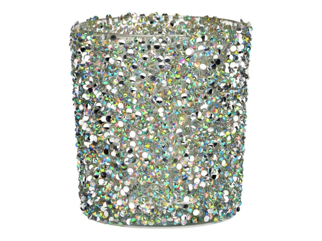 Svícen skleněný, vícebarevné třpytky 9 cm