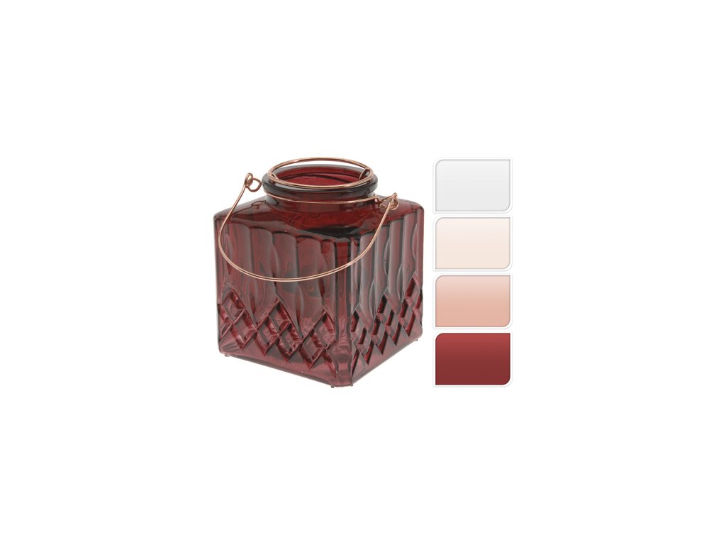 Skleněný svícen s drátovým uchem na čajovou svíčku.