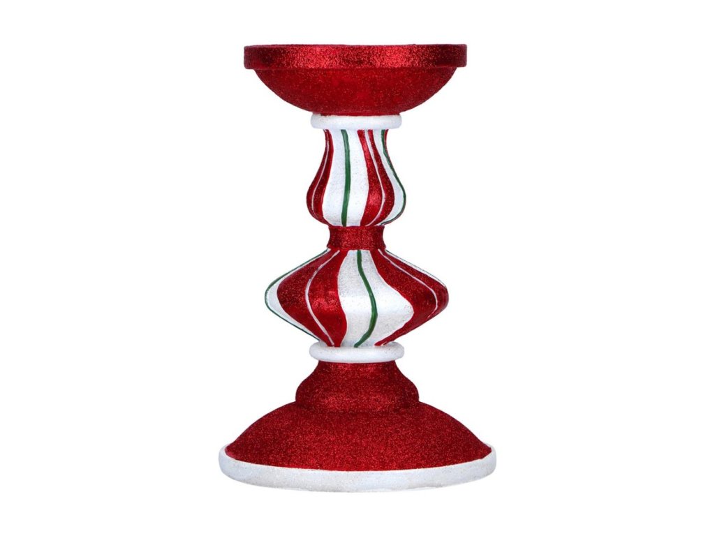 Sváteční svícen v červené třpytivé barvě. Materiál: Polyresin Cena je za 1 kus.Doplňkové parametry