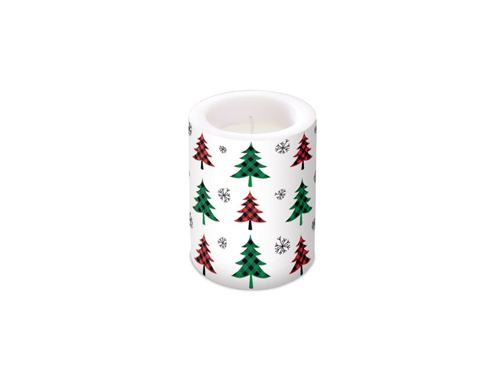 Bílá svíčka dekorovaná se zelenými a červenými vian. stromky.Doplňkové parametry