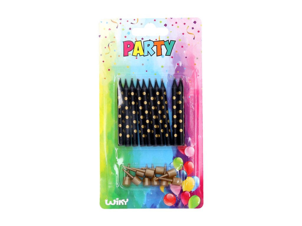 Svíčky 10ks + stojánky 10ks zlaté tečky. Velikost jedné svíčky: 6 cmDoplňkové parametry