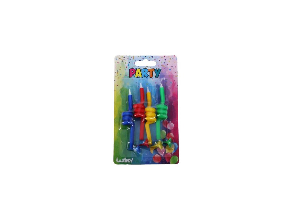 Svíčky jsou vynikající pro ozdobení hlavně dětských dortů. V balení jsou 4 svíčky. Balení obsahuje i stojánky. Bezpečnostní pokyny: Svíčky používejte vždy se stojánky, nenechávejte dohořet až ke stojánku.Doplňkové parametry
