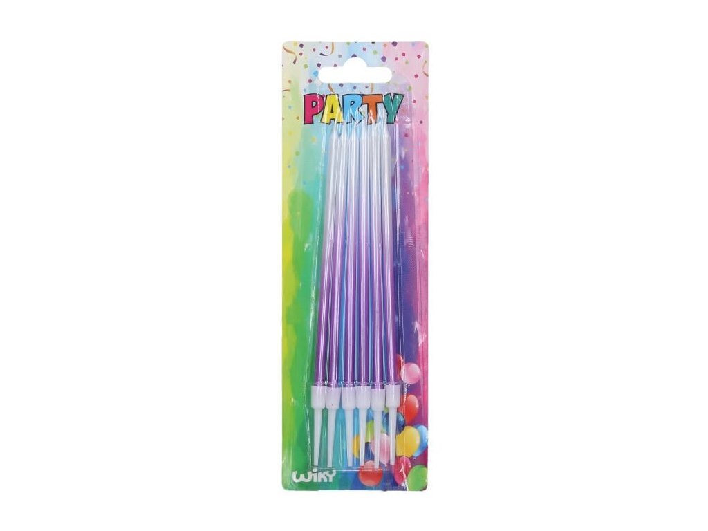 Popis zbožíNarozeninové svíčky se stojánkem v elegantní fialové barvě s kovově lesklým efektem. Balení na závěsném blistru. Rozměry svíčky: Ř 4 mm, výška 120 mm, výška stojánku 35 mm. Rozměry balení: šířka 65 mm, výška 195 mm, hloubka 4 mm.Doplňkové parametry