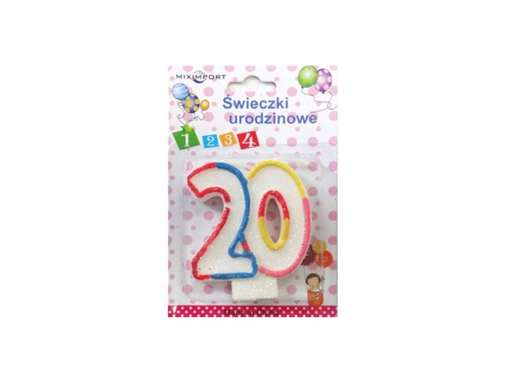 Dortová svíčka s barevným okrajem a brokátem, číslo 20.Doplňkové parametry