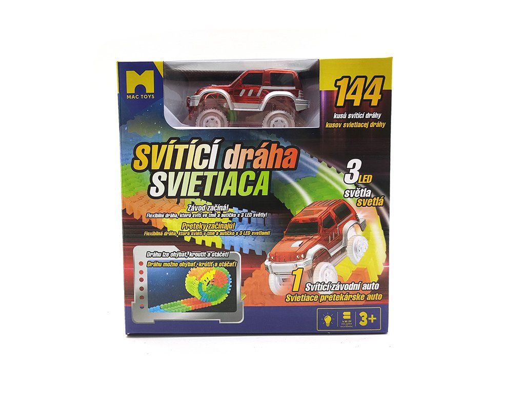 Svítící dráha s 144 díly a autíčkem, které svítí. Dráha je flexibilní a dá se z ní postavit jakýkoliv tvar. Buď kreativní a postav si dráhu podle sebe. Dráha ve tmě fosforeskuje.Doplňkové parametry