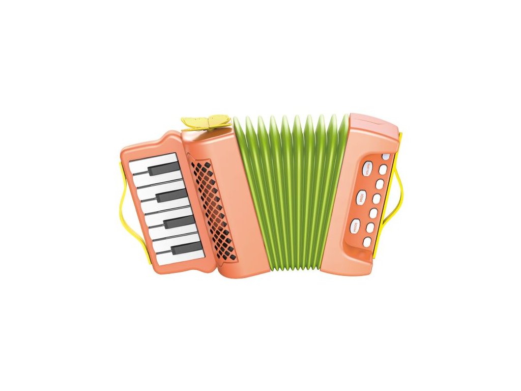 Tahací harmonika akordeon. Rozměry 14x6x23 cm. Zvukové efekty. 2xAA baterie nejsou součástí.Doplňkové parametry