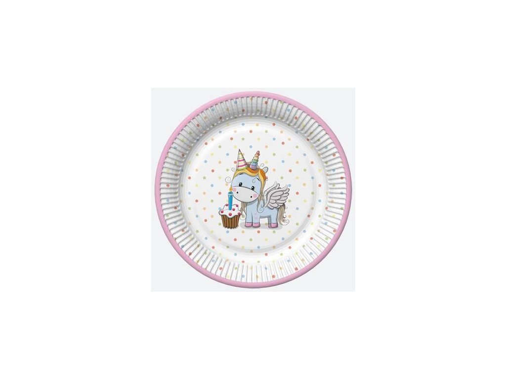 Talíř papírový PM 23cm 8ks Sweet Unicorns with Pastel Dots