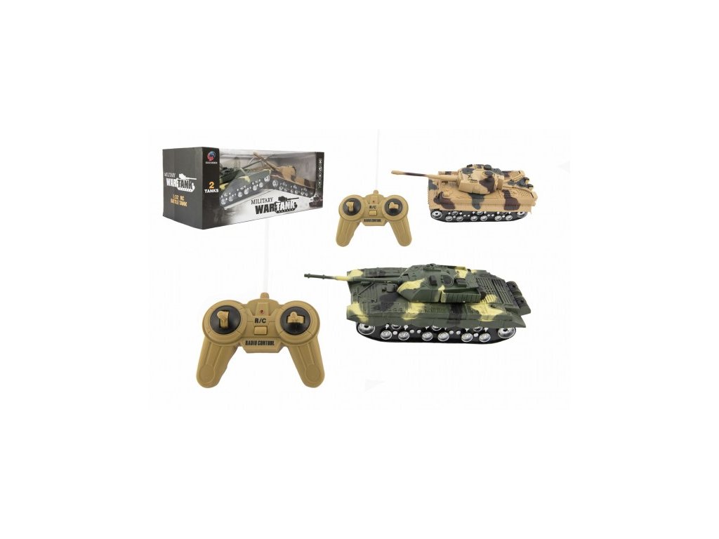 Dva tanky, které vydávají zvukové a světelné efekty, můžete jim i ručně otočit věže! Pohybují se dopředu, dozadu, doprava a doleva, jsou osázený pásy, které jsou připevněny napevno (jezdí na kolečkách), v měřítku 1:32. Baterie: Tank 4xAA nejsou součástí, ovládání 2xAA nejsou součástí balení. Balení obsahuje 2ks tanků a 2 ks ovládání, tanky proti sobě nebojují. Rozměr tanku: 25 cm Rozměr krabice: 43 x 17 x 19 cm Vhodné pro děti od 3 letDoplňkové parametry