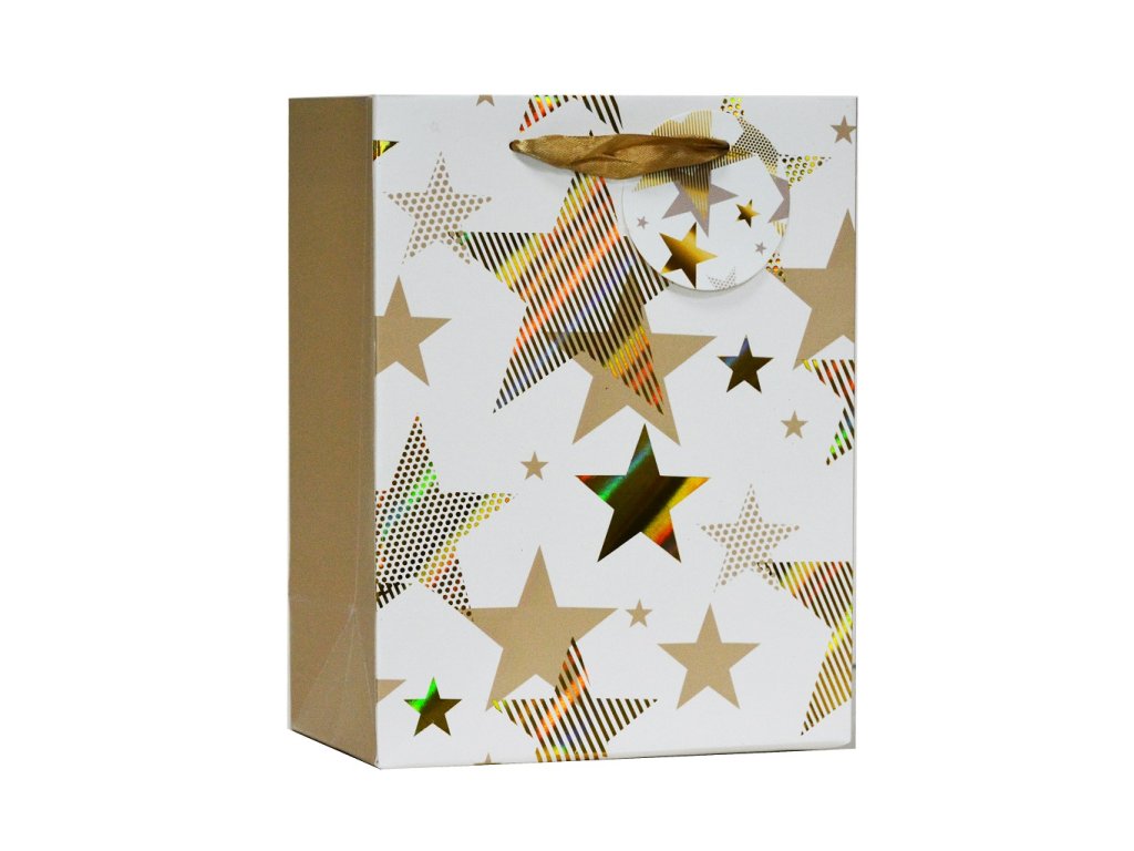 Elegantní dárková taška s potiskem. Je vyrobená z pevného papíru, dno je vystužené vloženým kartonem. Taška má pevná textilní ouška s jmenovkou. Rozměry : 26 x 32 x 12cm, Mix motivů/barev Zasíláme dle skladových zásobDoplňkové parametry