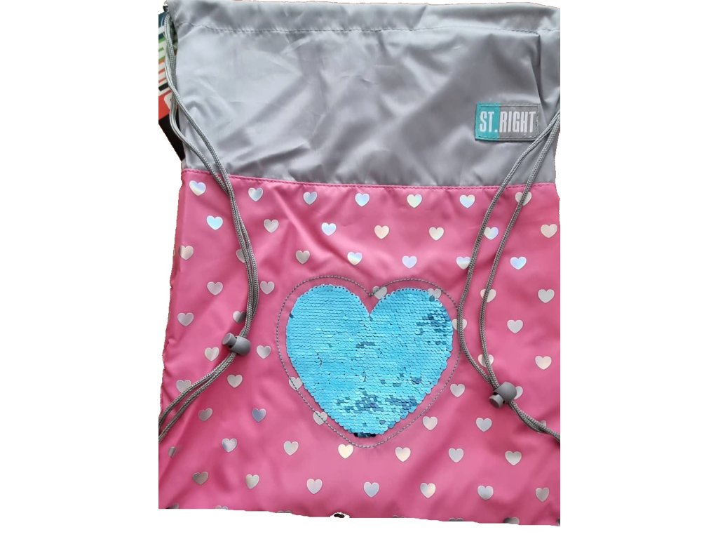Taška/sáček na šňůrkách SEQUIN HEARTS, rozměry: 46 x 36 cm