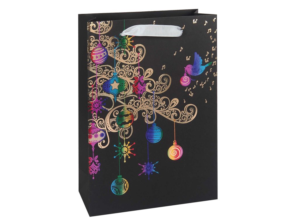 Taška vánoční dárková, černá, potisk, 22,5 x 33,5 x 10cmDoplňkové parametry