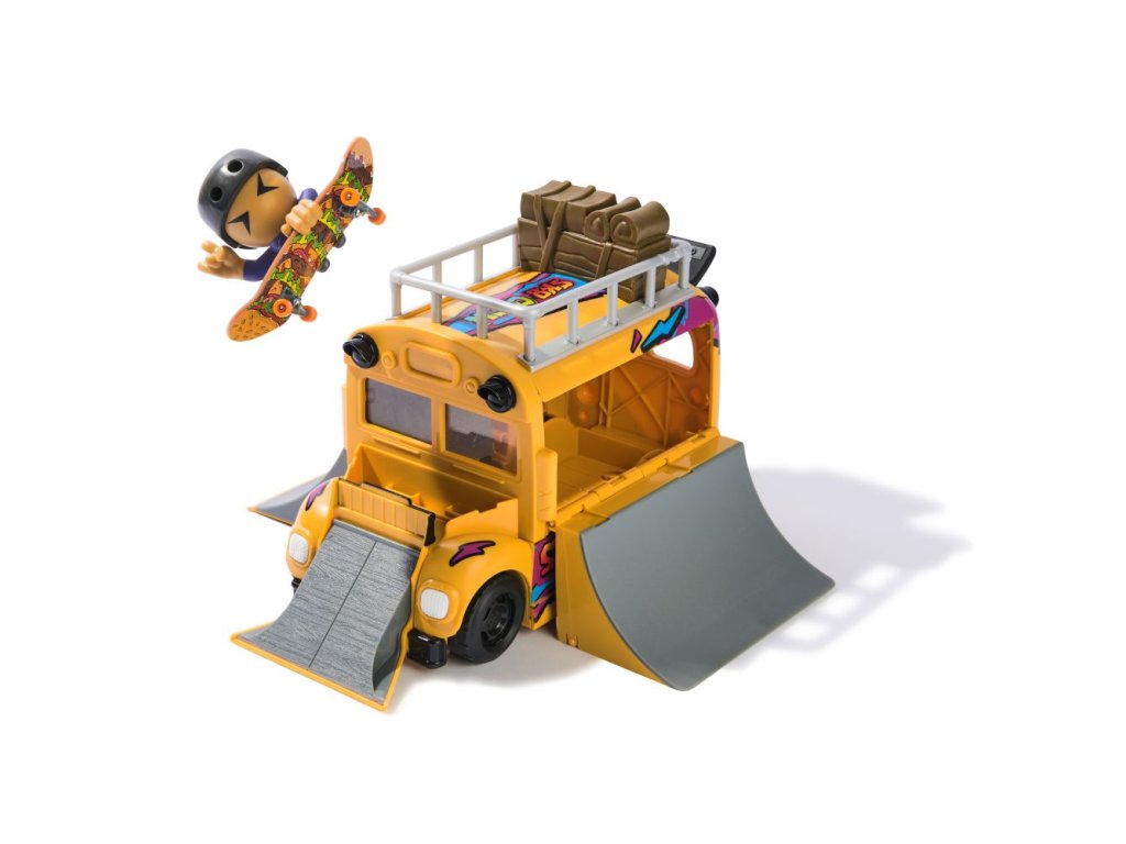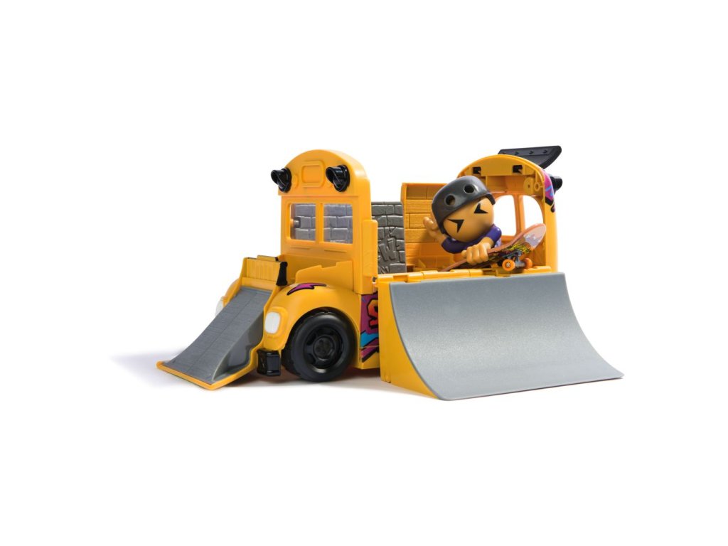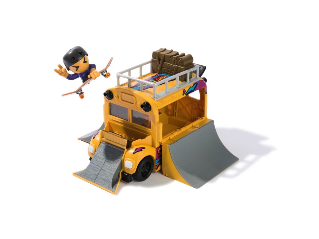 Jezděte ve velkém stylu s transformujícím se autobusem Ultra Sk8 Bus 2 v 1 od Tech Deck. Přijeď ve skate busu s opravdovými funkčními pneumatikami. Autobus se rozkládá na skatepark se 3 rampami, které skvěle poslouží k procvičení vašich skateboardových dovedností. Sjíždějte po střeše skate busu a vytvářejte nová komba. Pročísněte vzduch pomocí dvou polovičních U-ramp a jedné další rampy na kapotě autobusu. Připevněte skateboardistu na prkno a začněte pilovat správnou techniku. Naskenujte QR kód, zhlédněte video tutoriály a naučte se své oblíbené triky. Úklid autobusu Sk8 Bus je snadný. Složte rampy, uložte svou figurku člena Sk8 Crew spolu s prknem dovnitř autobusu a vydejte se na cestu. Posbírejte všech 15 figurek týmu Sk8 Crew a posuňte svou sbírku na novou úroveň (prodávají se samostatně). Prohánějte se po okolí a sjíždějte zábradlí s novými fingerboardy pro děti řady X-Connect. Sestavte si sady ramp Quarter Bowl Ruckus nebo Pyramid Shredder 2.0 (každá se prodává samostatně) a podrťte svá prkna na oblíbených fingerboardových překážkách, jako je Tech Deck Skatepark. K dispozici je spousta prken, figurek a hracích sad, které můžete sbírat! Užijte si jízdu, otočky a skoky na překážky s fingerboardy a BMX koly Tech Deck od skutečných skatových společností! Miniaturní prstové skateboardy a sady s rampami Tech Deck jsou ideálním dárkem pro dívky ve věku od 6 do 8 let, které milují malé a trendy hračky. Hledáte hračky pro chlapce? Zvažte Tech Deck jako alternativu k autíčkům pro chlapce ve věku 6–8 let. Přineste si domů Tech Deck Ultra Sk8 Bus ještě dnes a naučte se jezdit na fingerboardu.Doplňkové parametry