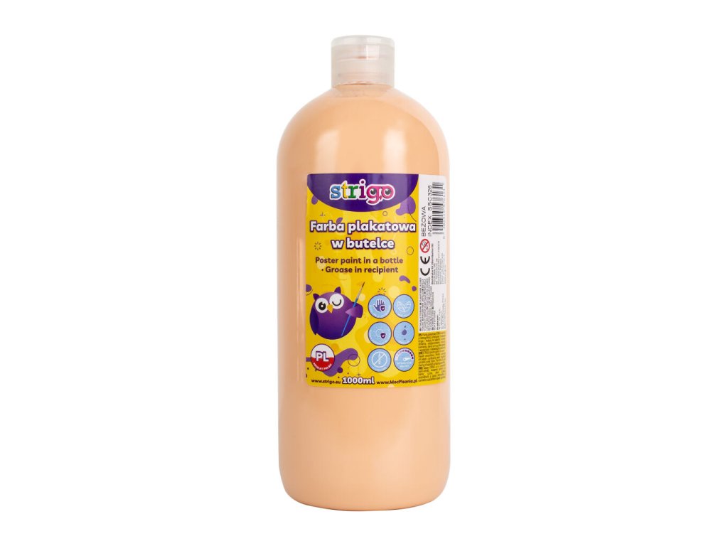 Plakátové barvy STRIGO v lahvičce s polotekutou konzistencí, která usnadňuje nanášení barvy a míchání barev. Dokonale kryjí a jsou vhodné na mnoho povrchů. Jsou perfektní pro malování na papír, karton, dřevo, neglazovanou keramiku a kámen. Barvy jsou odolné vůči světlu a oděru. Pohodlné a rychlé použití. Byly vyrobeny na bázi nejkvalitnějších pigmentů, které zaručují intenzitu a čistotu lakovaných povrchů. Lze prát z většiny tkanin. Barvy v plastových lahvích 1000 ml. Různé barvy na výběr. Vhodné pro děti starší 3 let.Doplňkové parametry