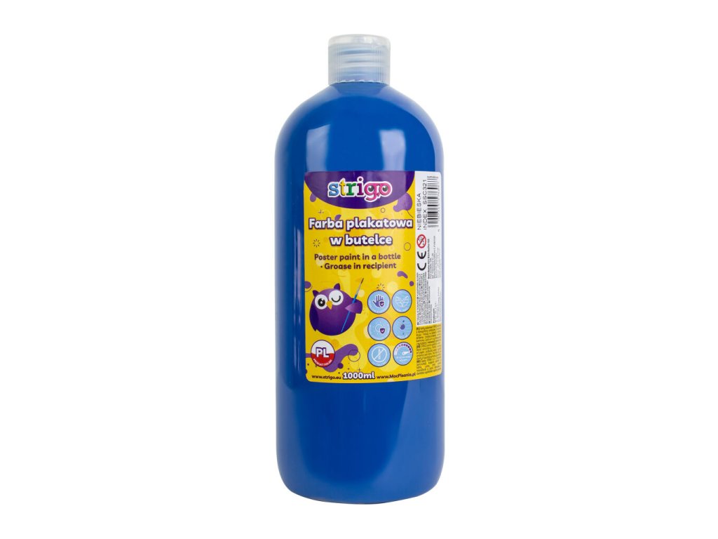 Plakátové barvy STRIGO v lahvičce s polotekutou konzistencí, která usnadňuje nanášení barvy a míchání barev. Dokonale kryjí a jsou vhodné na mnoho povrchů. Jsou perfektní pro malování na papír, karton, dřevo, neglazovanou keramiku a kámen. Barvy jsou odolné vůči světlu a oděru. Pohodlné a rychlé použití. Byly vyrobeny na bázi nejkvalitnějších pigmentů, které zaručují intenzitu a čistotu lakovaných povrchů. Lze prát z většiny tkanin. Barvy v plastových lahvích 1000 ml. Různé barvy na výběr. Vhodné pro děti starší 3 let.Doplňkové parametry