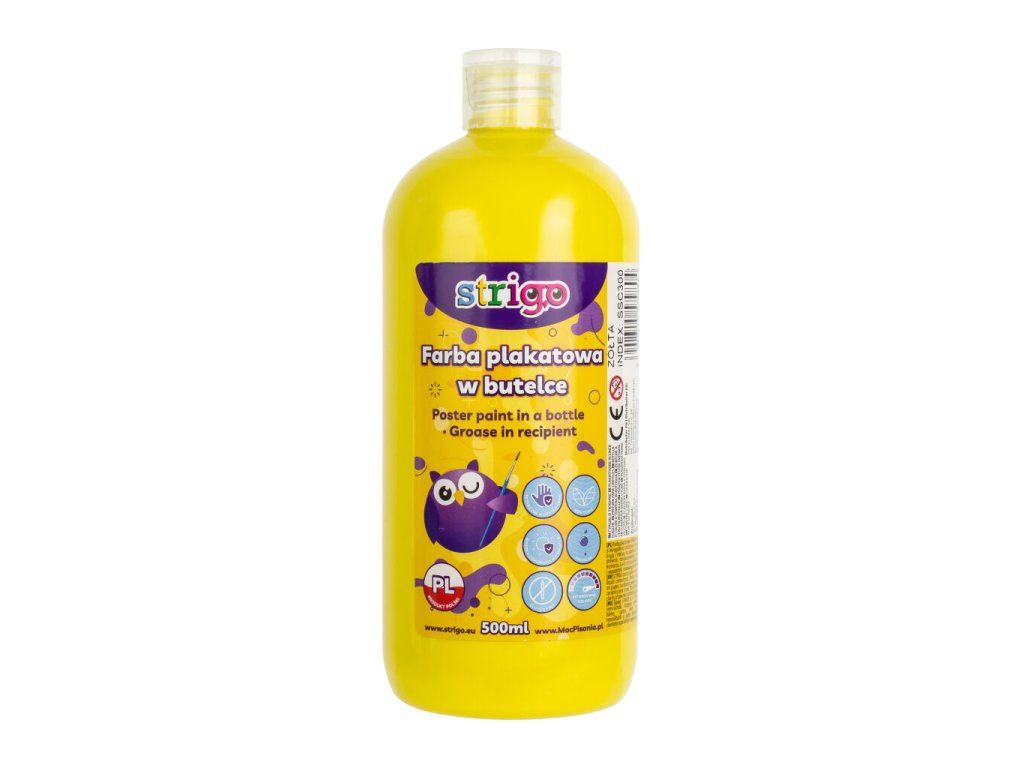Plakátové barvy STRIGO v lahvičce s polotekutou konzistencí, která usnadňuje nanášení barvy a míchání barev. Dokonale kryjí a jsou vhodné na mnoho povrchů. Jsou perfektní pro malování na papír, karton, dřevo, neglazovanou keramiku a kámen. Barvy jsou odolné vůči světlu a oděru. Pohodlné a rychlé použití. Byly vyrobeny na bázi nejkvalitnějších pigmentů, které zaručují intenzitu a čistotu lakovaných povrchů. Lze prát z většiny tkanin. Barvy v plastových lahvích 500 ml. Různé barvy na výběr. Vhodné pro děti starší 3 let.Doplňkové parametry