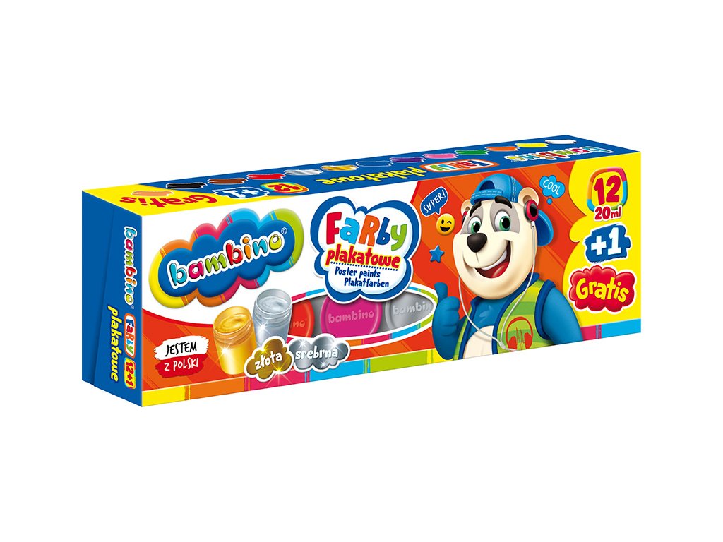 Temperové barvy BAMBINO 20 ml 12 barev, včetně zlaté a stříbrné