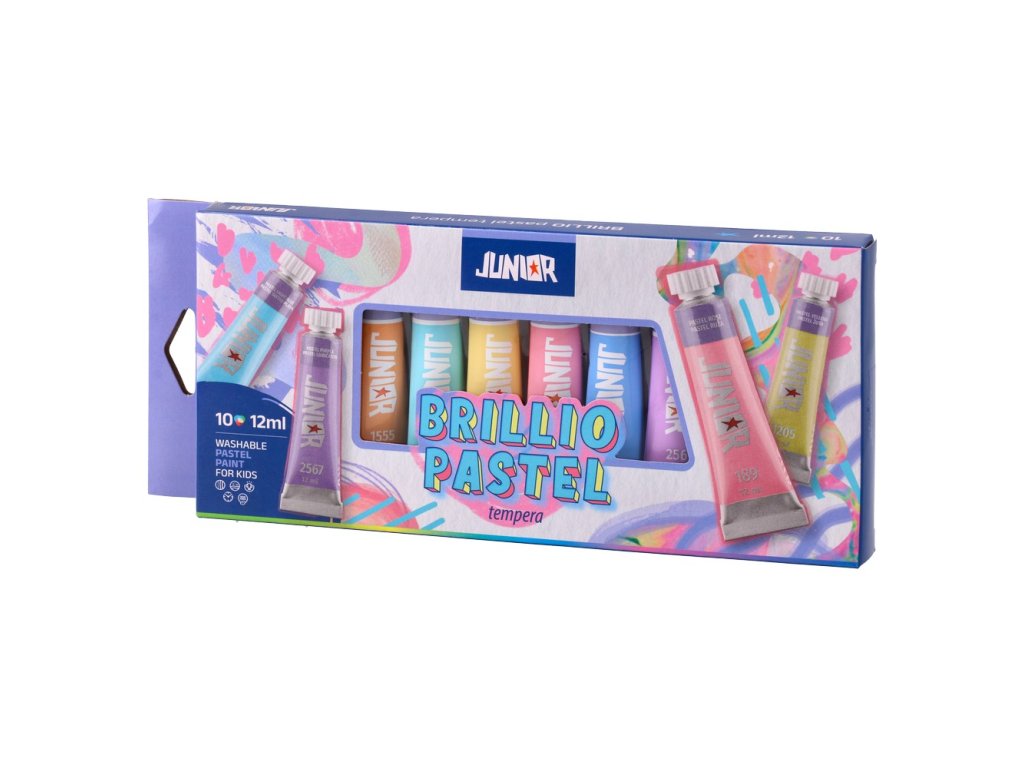 Temperové barvy Brillio JUNIOR nabízí širokou škálu barev s výborným krytím a jednoduchou aplikací. Netoxické a kvalitní s jasnými a dlouhotrvajícími barvami, díky čemuž jsou tou správnou volbou pro každé dítě. Kvalitní pigment a hustá struktura umožňují použití v různých technikách i masivní aplikace podobné akrylovým barvám.Doplňkové parametry