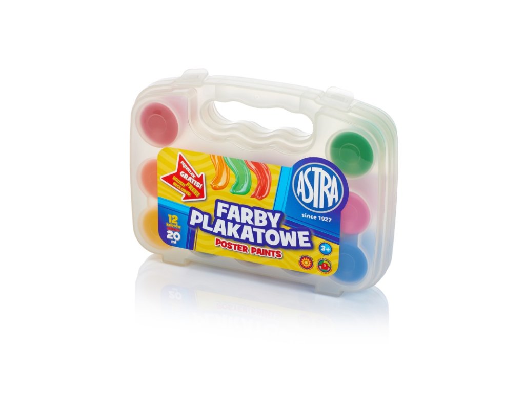 Temperové barvy v kelímku Astra, 12x20ml, plastový kufřík + štětec, 301117002