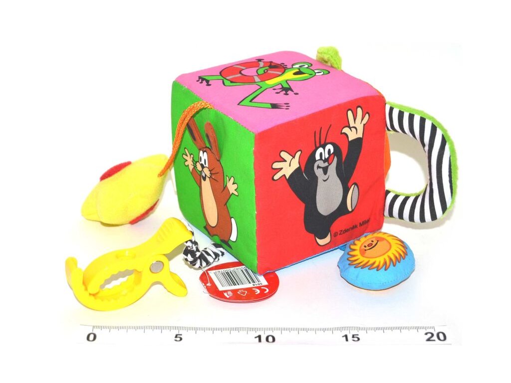 Textilní multifunkční kostka má na každé stěně má zobrazen veselý obrázek Krtečka nebo jeho kamarádů. Má 2 uši, díky kterým se dobře drží v malých ručičkách. Po stranách kostky jsou napevno zavěšeny různé drobnosti Rozměr kostky: 9,5 x 9,5 cm Doporučený věk: 0+Doplňkové parametry