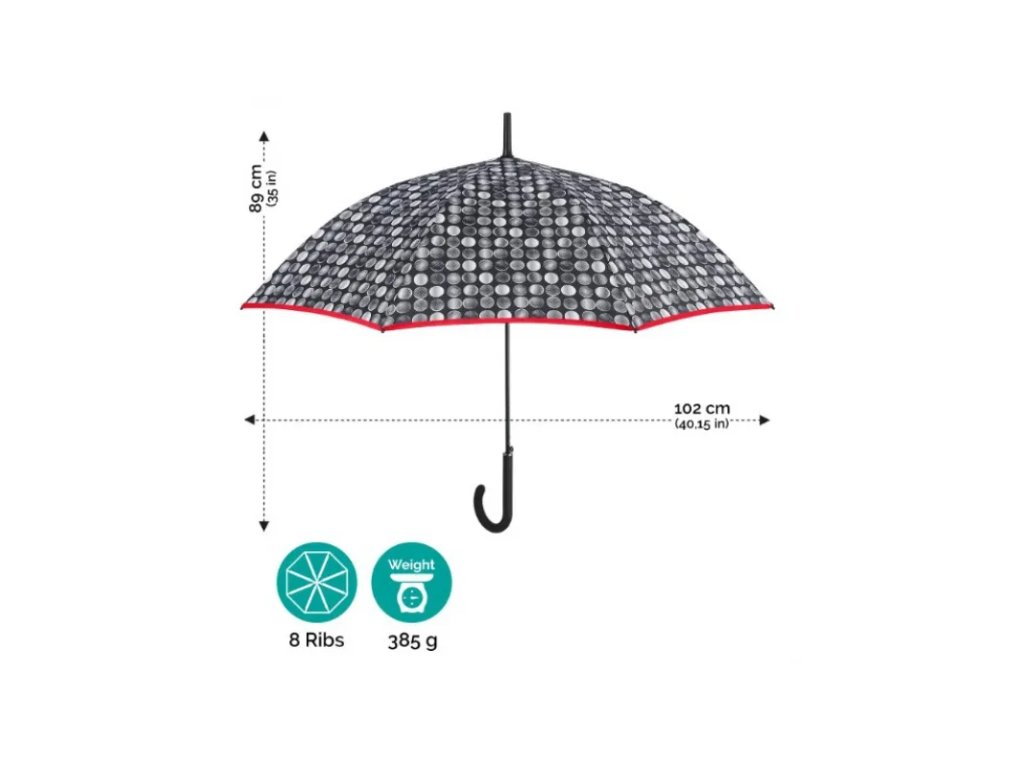 • průměr nataženého deštníku je 102cm, hmotnost 378g