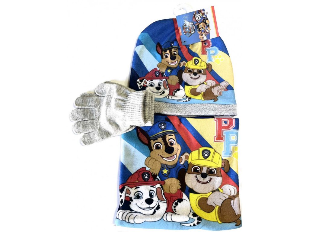 TLAPKOVÁ PATROLA set čepice, nákrčník, rukavice 4081 šedý lem