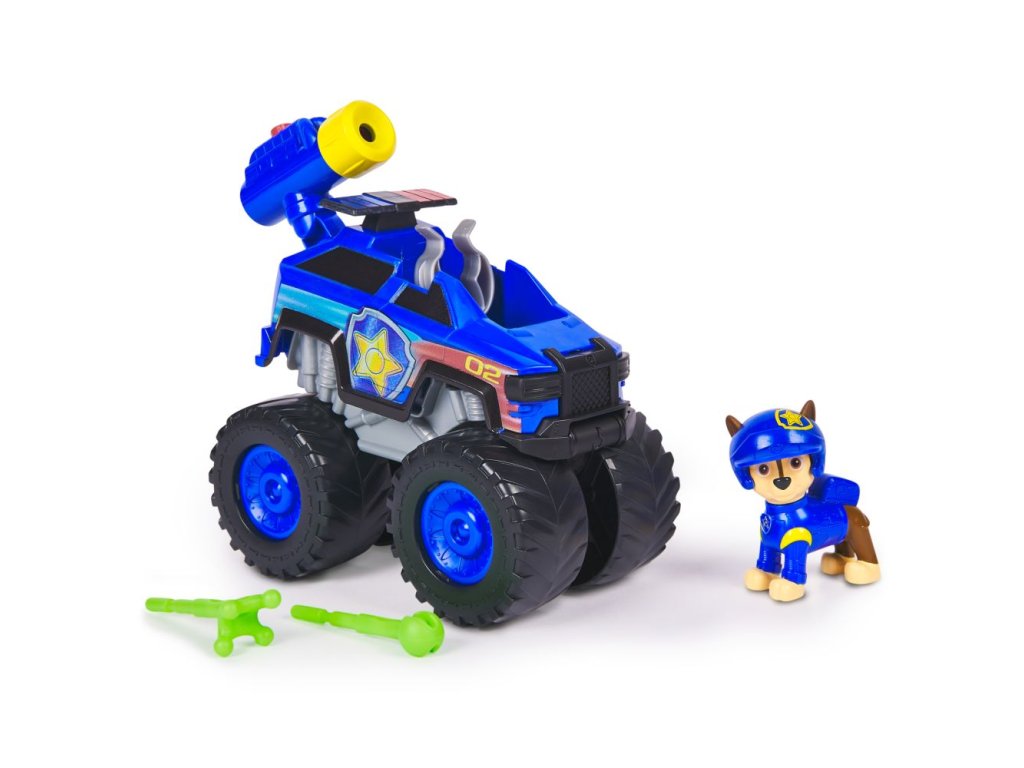 Vydejte se na vzrušující záchranné mise s Chasem a jeho záchranářským hlídkovým vozem! Chaseovo policejní autíčko s motivem monster trucku má veliká kola a autentický design a provedení Tlapkové patroly, takže vypadá přesně jako v seriálu! Posaďte Chase na sedadlo řidiče a vyrazte na záchranou akci. Jakmile přijde správný čas, nabijte vystřelovač jedním ze dvou projektilů, stisknutím tlačítka vystřelte a zachraňte situaci! Hračky s tematikou Tlapkové patroly pro chlapce a dívky podporují nápaditou hru a zlepšují jemnou motoriku, proto jsou skvělými dárky pro všechny fanoušky pořadu. Hrdinové z Tlapkové patroly a jejich autíčka vám umožní znovu prožít vaše oblíbené okamžiky z různých dobrodružství Tlapkové patroly, jako jsou Mocná štěňata a Tlapková patrola ve filmu, nebo se vydat na zcela nová dobrodružství (prodávají se zvlášť). Užijte si dlouhé hodiny zábavy a vydejte se na dobrodružství inspirované seriálem Tlapková patrola s celým týmem záchranářů, který obsahuje autíčka Tlapkové patroly, akční figurky a zcela nové velitelství v podobě Tlapkové věže.Doplňkové parametry