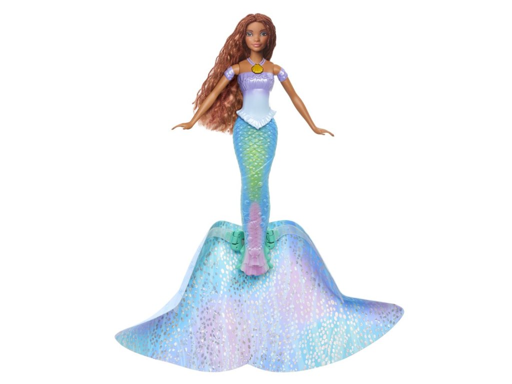 Prozkoumejte kouzelný svět Malé mořské víly novým způsobem! Panenka Malá mořská víla s kouzelnou proměnou je inspirovaná hraným filmem společnosti Disney. Panenka nabízí úžasnou proměnu z princezny na mořskou vílu a to stisknutím tlačítka na panence. Panenka má v podobě princezny modrou lesklou sukni a v podobě mořské víly ocasní ploutev.Doplňkové parametry