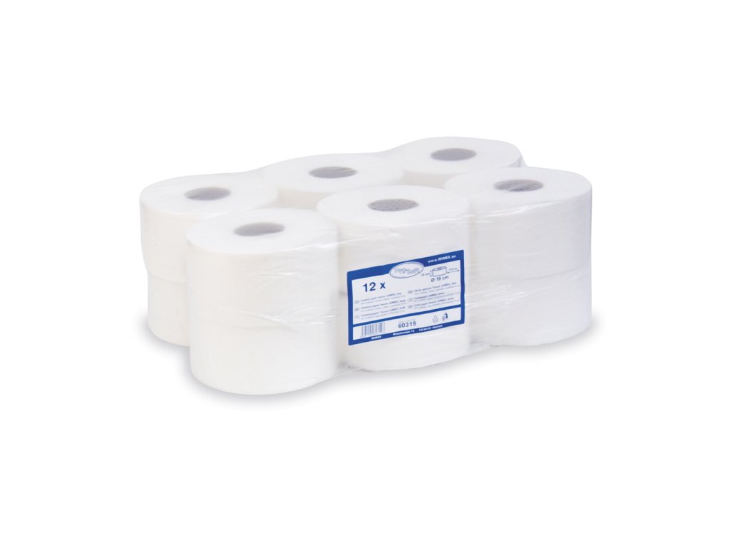 Toaletný papier tissue JUMBO 2-vrstvý , pr. 19cm, 100% celulóza, dĺžka návinu 145 m.Doplňkové parametry