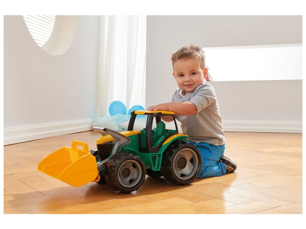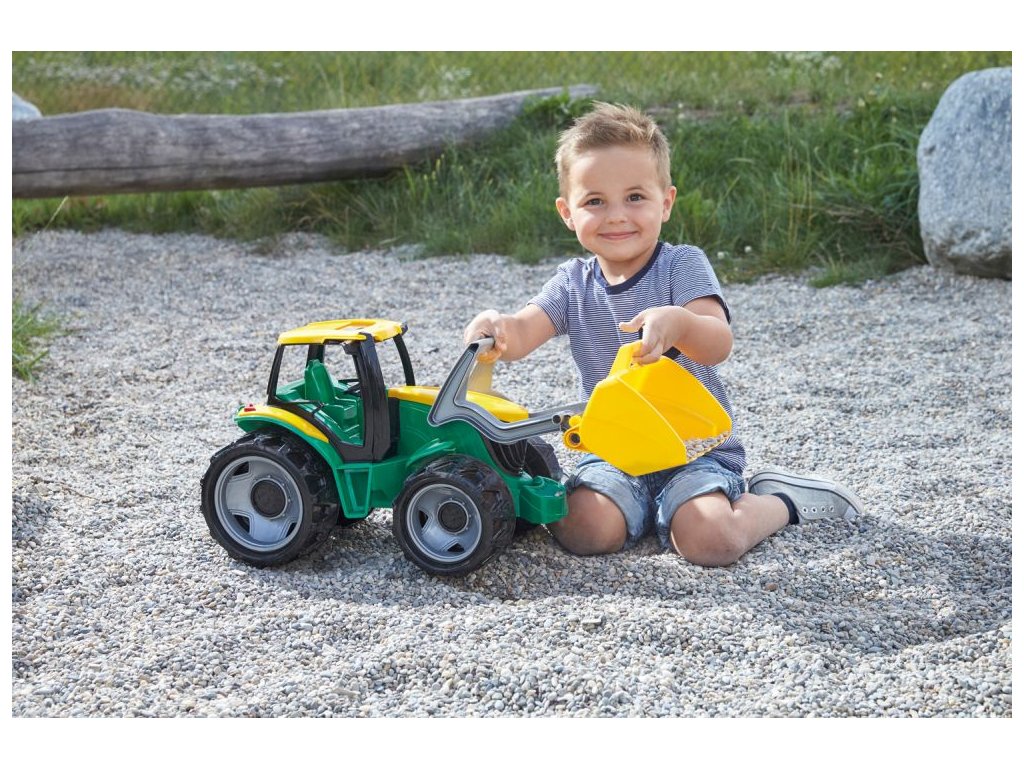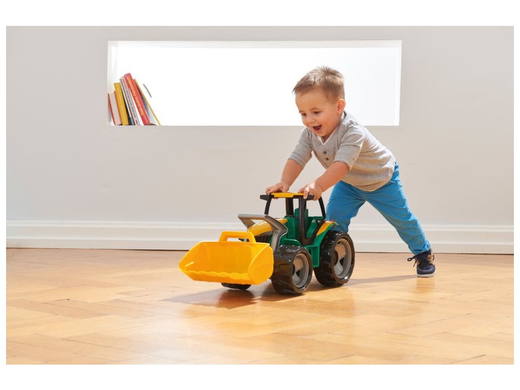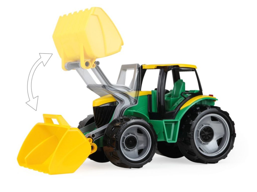 Kvalitně zpracovaný traktor s moderním designem. Byl navrhnut a vyroben tak, aby odpovídal požadovanému modernímu vzhledu, funkčnosti, odolnosti, kvalitnímu zpracování, maximální hrací hodnotě. Velikost 69x27x22cm. Vyrobeno v ČR.Doplňkové parametry