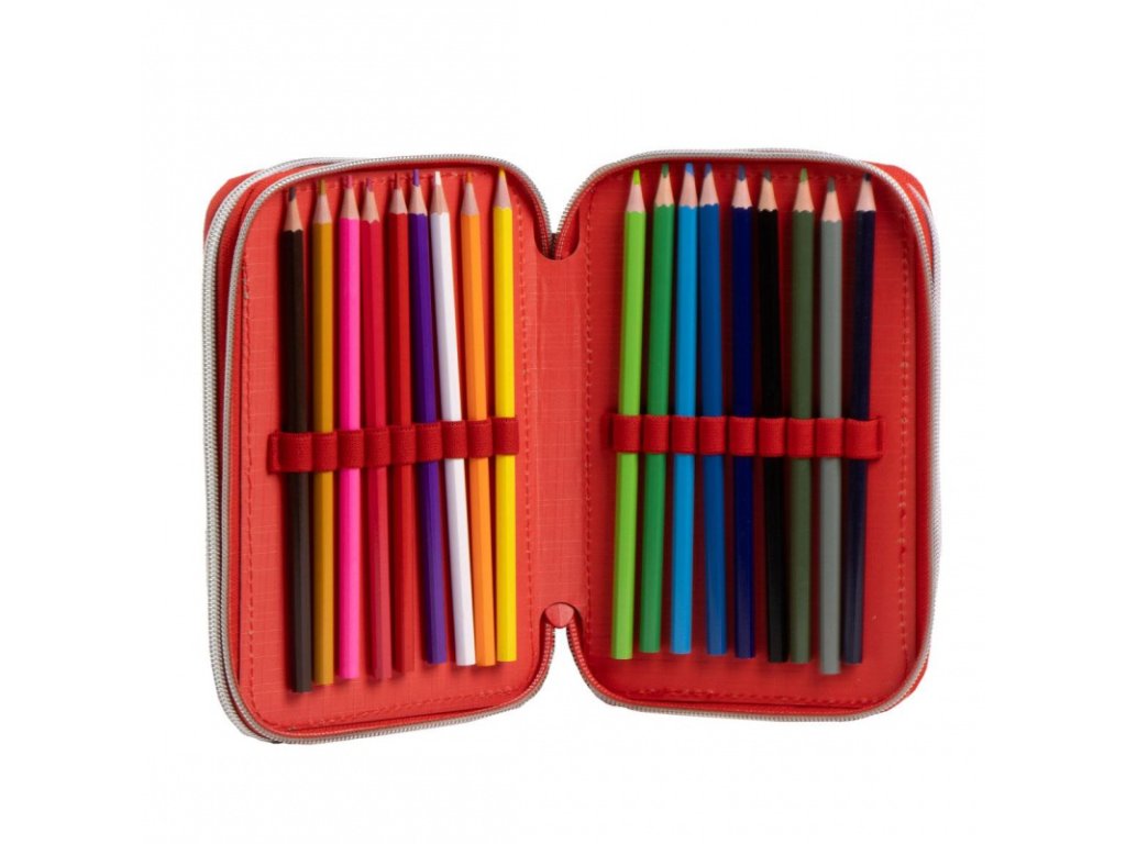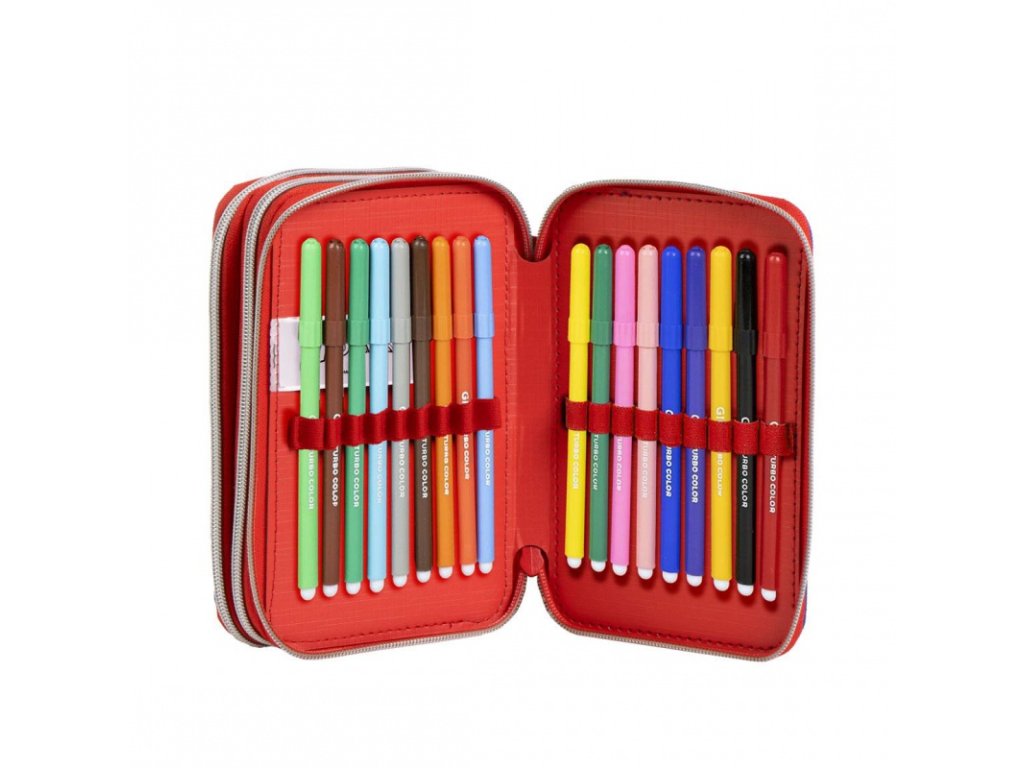 Penál je naplněn kvalitními psacími potřebami italské značky GIOTTO, které jsou známé svou spolehlivostí a dlouhou životností. Gumičky jsou přizpůsobeny pastelkám i fixům, takže vše drží pevně na svém místě.