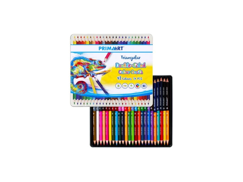 Trojhranné pastelky dvoubarevné 24/48 barev PrimaArt v plechové krabičce