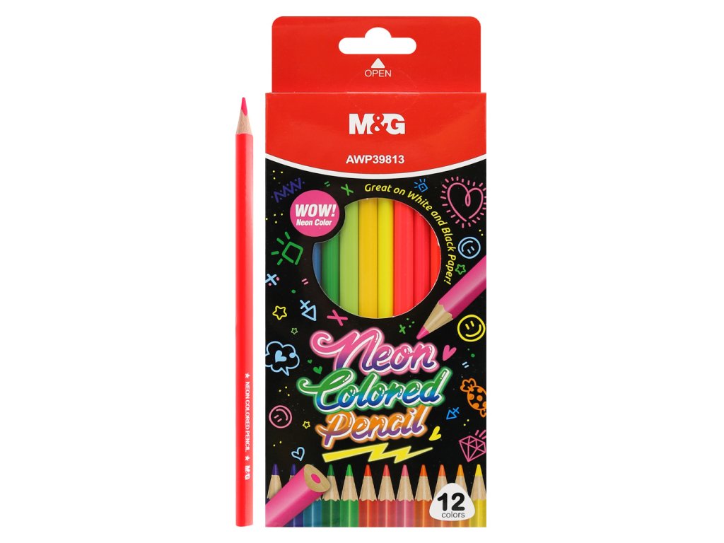 Trojhranné pastelky M&G - sada 12 neonových barev