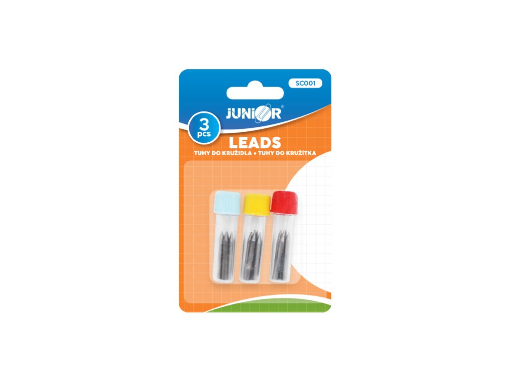 Náhradní tuhy do kružítka. Tuhy jsou baleny v malých plastových tubách s barevným uzávěrem. Souprava obsahuje 3 tuby po 3 kusech, balené na blistru.Doplňkové parametry