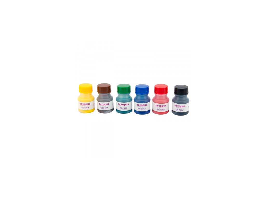 Popis produktu: Balení obsahuje tuš v červené, zelené, černé, modré, žluté a hnědé barvě. Objem lahviček 20ml. Netoxická. Obchodní infomace: Výrobce: Octopus Dovozce do ČR: Reas-Pack s.r.o.Doplňkové parametry