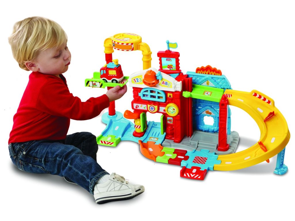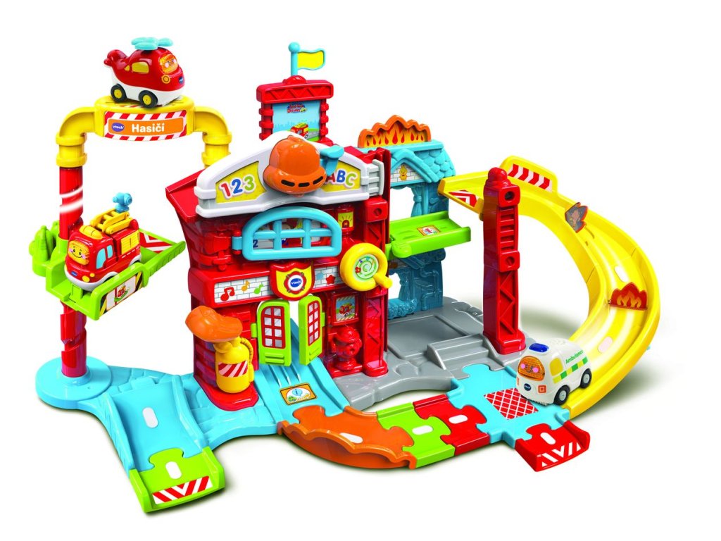 Tut Tut Autíčka – Hasičská stanice. Interaktivní hračka s jedním Tut Tut mluvícím hasičským autíčkem. Hasičská stanice umožňuje: • sestavit desítky různých variant budovy a cest • povídání a různé reakce Tut Tut autíček na různých místech dráhy pomocí SmartPoint bodů. • otáčení po točně nahoru a dolu (podporuje rozvíjení jemné motoriky) • přejezd výtahovou plošinou přímo na střechu stanice • používání hasičského alarmu • pumpování • navíjení hadice • otevírání a zavírání vrat i oken • sklápět protipožární stěnu • autíčko zná desítky roztomilých frází, zazpívá 3 písničky a zahraje 6 melodií. Hasičskou stanici lze přímo propojit s ostatními dráhami pro autíčka Tut Tut. Hra s Tut Tut Hasičskou stanicí autem rozvíjí u dětí především: • motorické dovednosti • představivost a kreativitu • slovní zásobu. Rodiče také ocení vysokou odolnost hračky proti mechanickému poškození i například automatické vypínání hračky, což zajistí vyšší životnost baterie.Doplňkové parametry