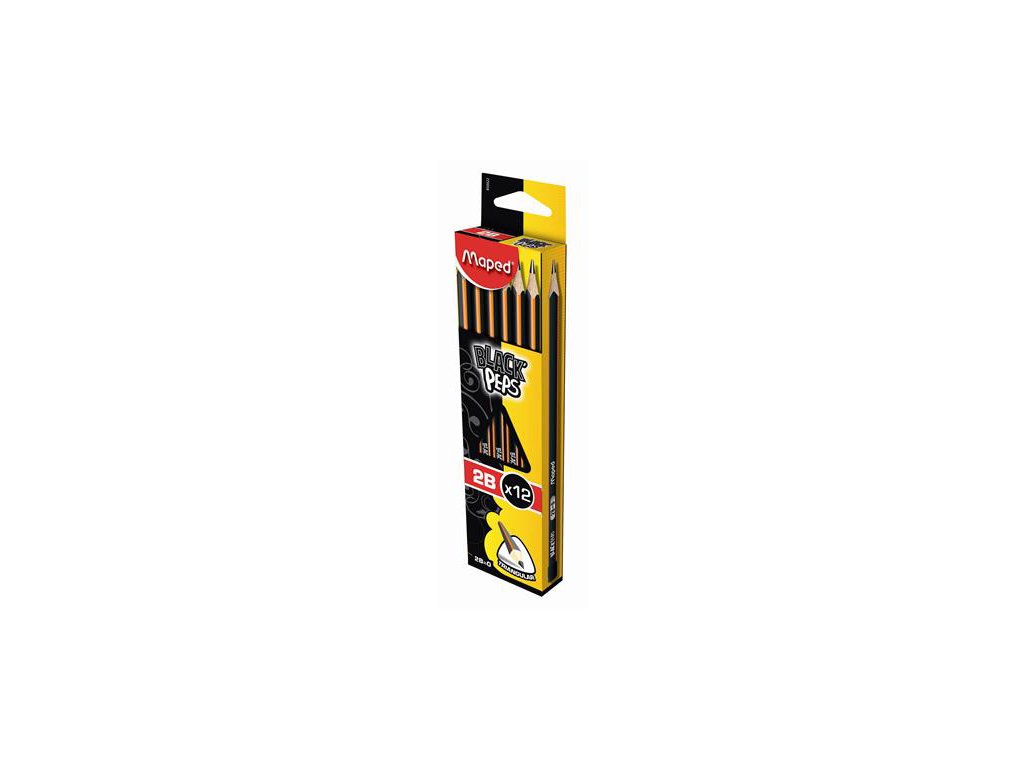 Tužka grafitová MAPED "BLACK'PEPS" 2B. Dřevěná lakovaná tužka. Ergonomické trojhranné tělo pro pohodlné držení. Vysoce kvalitní nelámavá tuha. Snadno ořezávatelná. Exkluzivní design. Šíře stopy 2,2 mm. Francouzská značka MAPED zaručuje vysokou kvalitu, funkčnost a moderní design.Doplňkové parametry