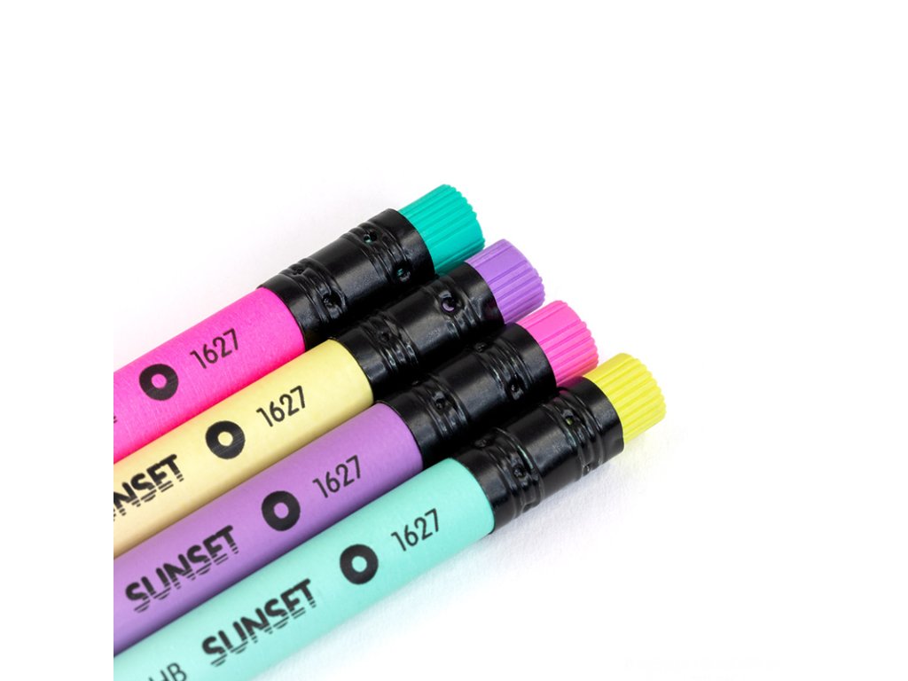 - vyrobeno z černého lipového dřeva s barevnou gumou (žlutá, fialová, růžová a zelená).