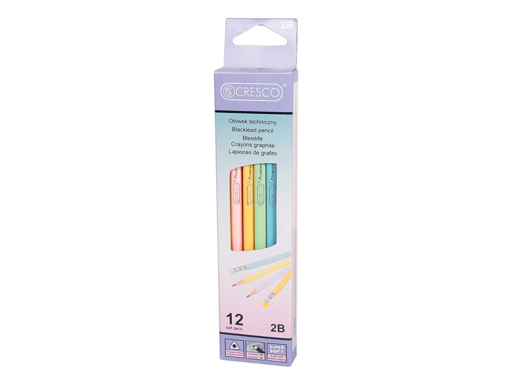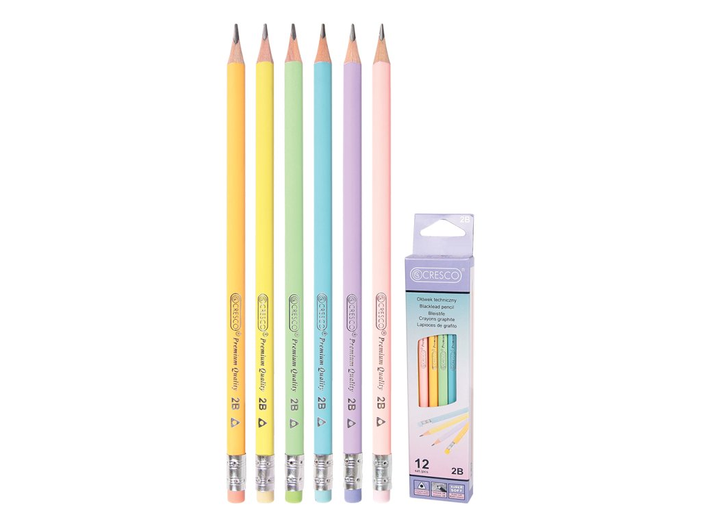 Grafitová tužka tvrdosti 2B - trojhranná se zastrouhaným hrotem a dřevěným tělem v pastelových barvách s gumou na opačném konci. - 6 ks v balení celková délka tužky: 190 mmDoplňkové parametry