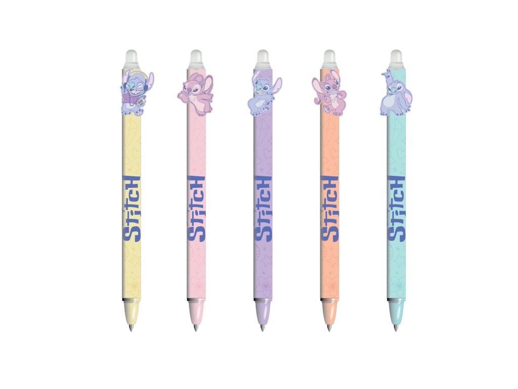 Roztomilá gumovací gelová pera s motivem populárního mimozemšťana Stitche potěší všechny milovníky Disney kouzel. Každé pero zdobí jemné pastelové barvy a originální ilustrace Stitche nebo Angel, díky nimž jsou pera nejen praktická, ale i krásným doplňkem do školy, kanceláře či na doma. Gelový inkoust píše hladce a plynule, a pokud se vám něco nepovede, jednoduše text vymažete speciální gumou na konci pera. DO OBJEDNÁVKY UVEĎTE VYBRANOU BARVU.Doplňkové parametry