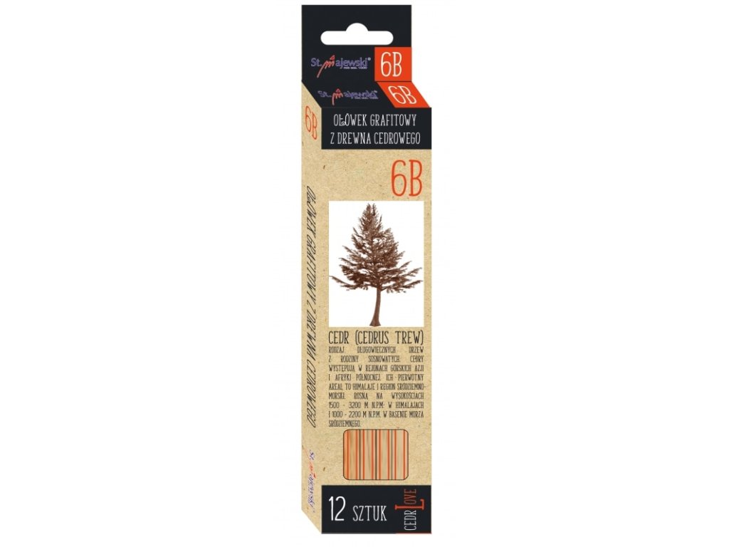 Technické tužky z řady CedrLove jsou profesionálně vyrobené psací potřeby, které dobře poslouží v kanceláři, domácnosti i ve škole. Vysoká kvalita tužek a použitá technologie SBS, chránící grafitovou tuhu proti zlomení, uspokojí začátečníky i zkušené kreslíře. Vlastnosti: Vyrobeno z cedrového dřevaTechnologie SBS (Special Bonding System) zajišťující grafit proti rozbitítvrdost grafitu 6BŠestihranný řezVysoká čistota grafituLakované hroty udávající tvrdost grafituModerní designDoplňkové parametry
