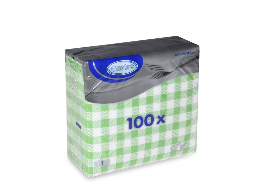 Ubrousky 1-vrstvé 33 x 33 cm karo zelené 100 ks