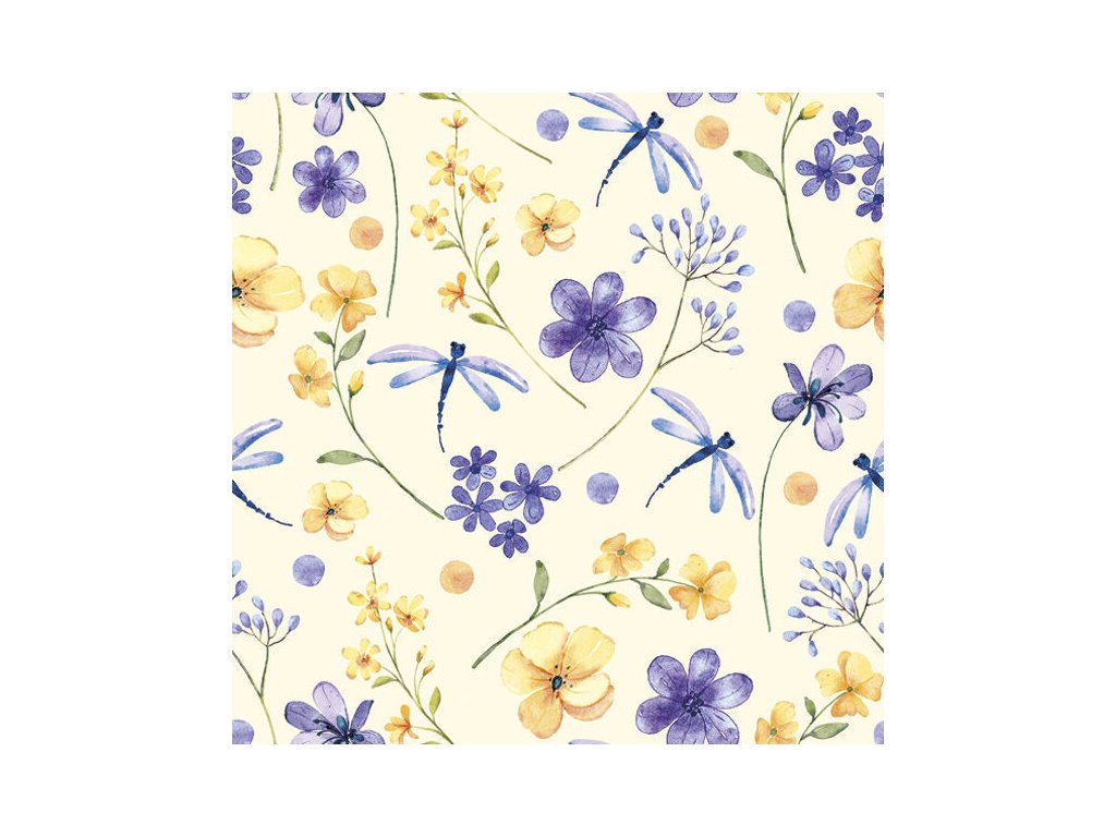 Ubrousky DAISY L (20ks) Floral Wallpaper with Dragonflies