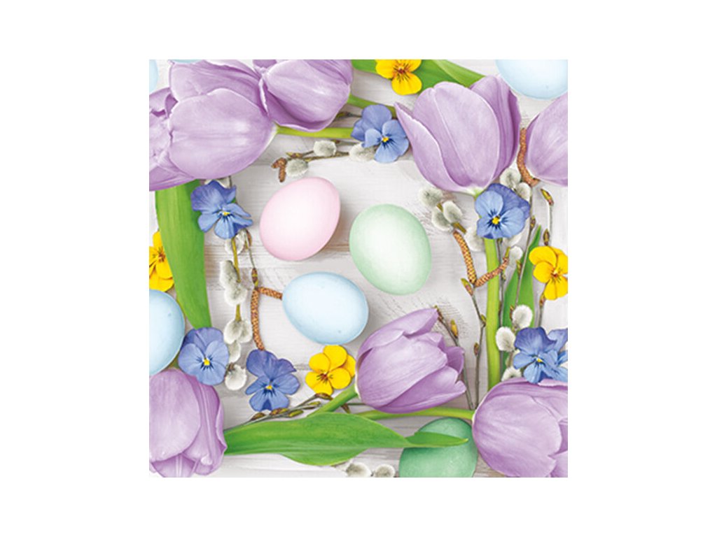 Ubrousky DAISY L (20ks) Flowers Frame with Pastel Eggs