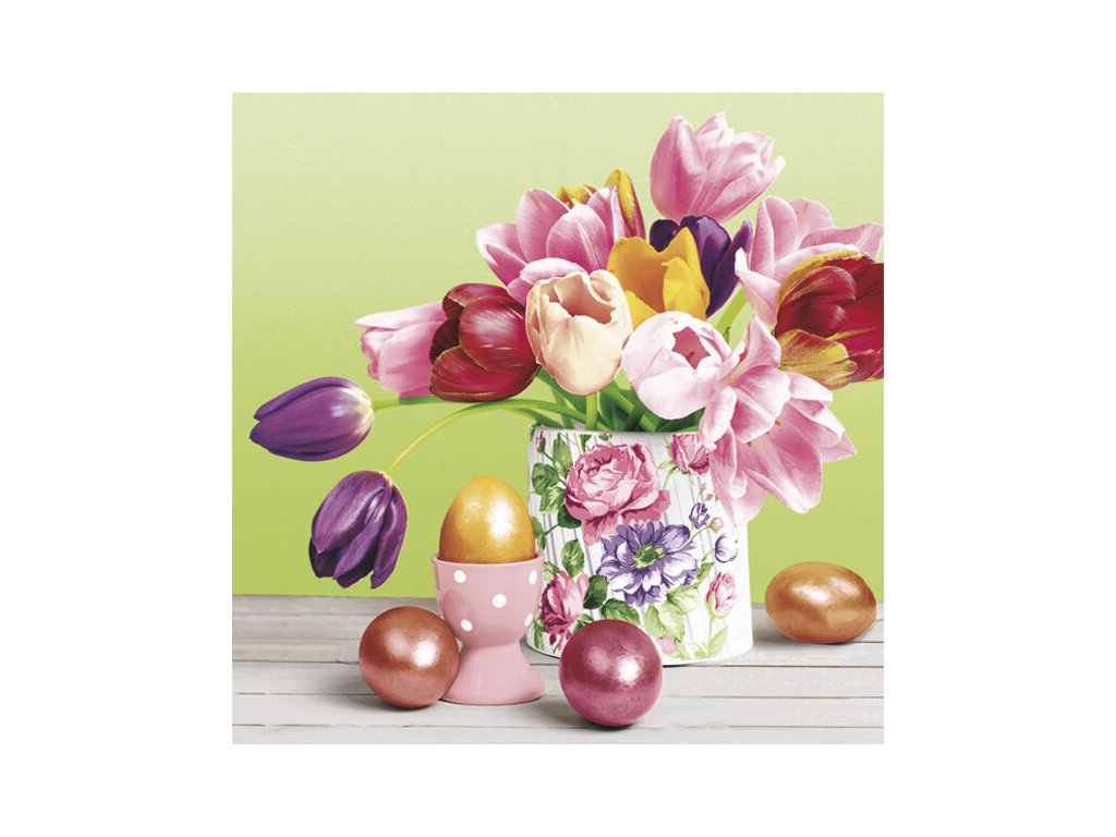 Ubrousky DAISY L (20ks) Pastel Tulips Bouquet with Golden Eggs